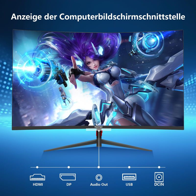 INFORMÁTICAMONITORESMonitor curvo para juegos de 27 pulgadas, monitor de computadora de 100 Hz, altavoces integrados,
