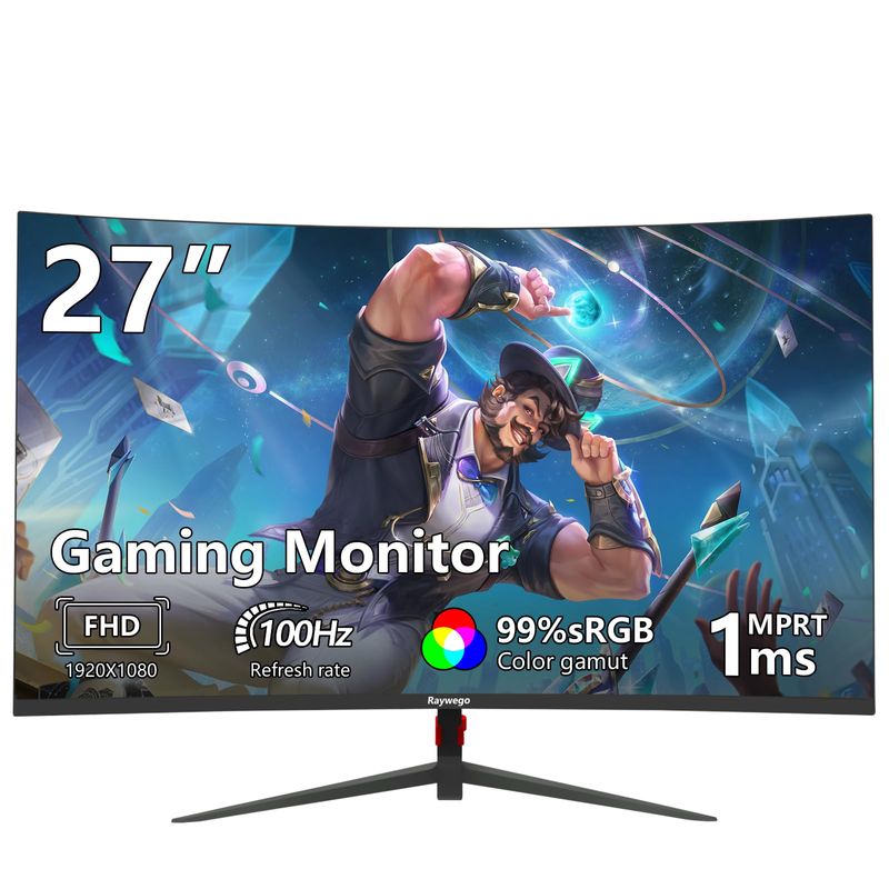 Monitor curvo para juegos de 27 pulgadas, monitor de computadora de 100 Hz, altavoces integrados,