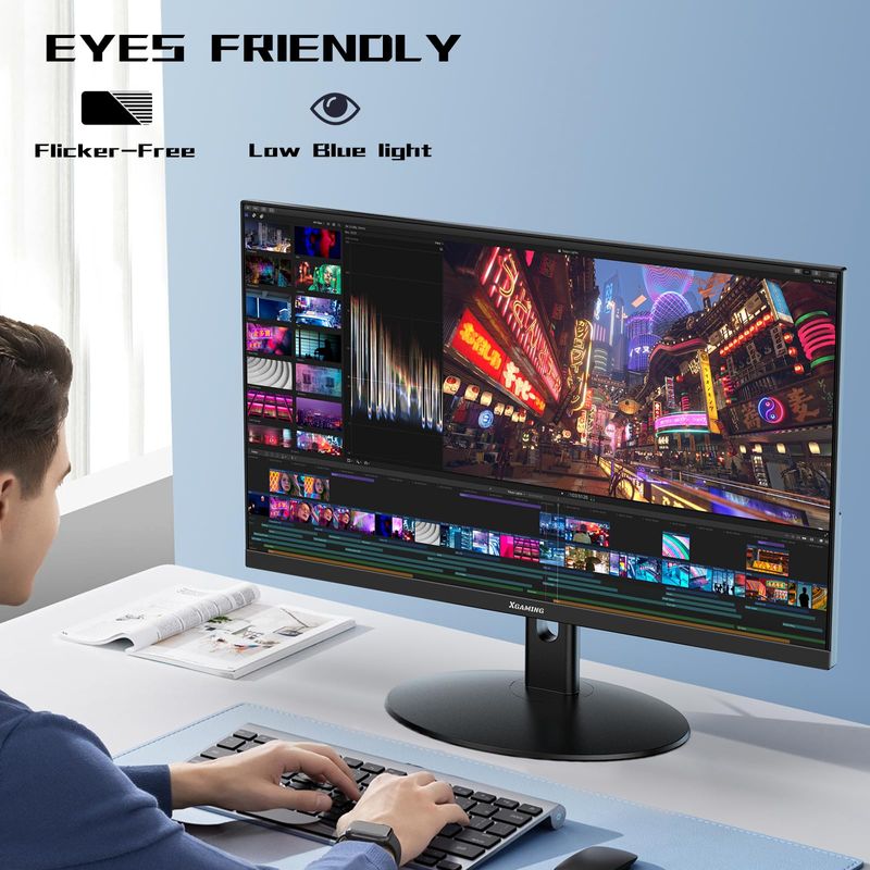 Monitor de 25 pulgadas, FHD 1080P 100Hz, pantalla de computadora sin marco, 1 ms 99% sRGB, cuidado