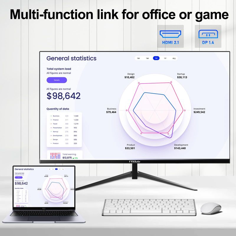 Monitor de computadora de 24 pulgadas, FHD 1920 x 1080P, monitor IPS de 180Hz, HDMI, DP, sin marco,