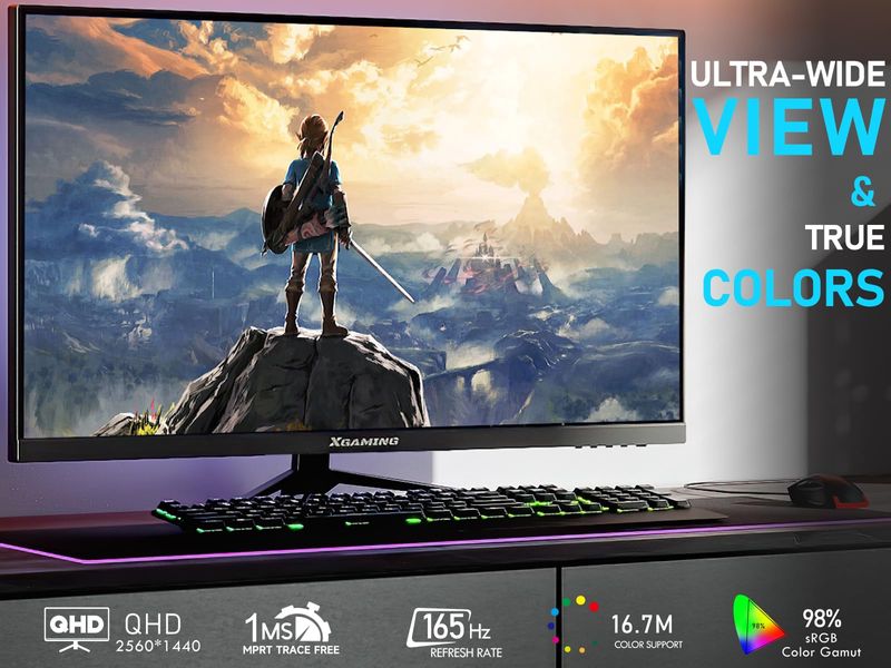 Monitor de juegos de 27 pulgadas, QHD 2560 x 1440p, 144 Hz/165 Hz 98% sRGB, 1 ms, FreeSync, HDMI