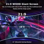 INFORMÁTICAMONITORESMonitor de juegos de computadora ultraancho curvado de 34 pulgadas 165 Hz, UWQHD 3440 x 1440, 1500R