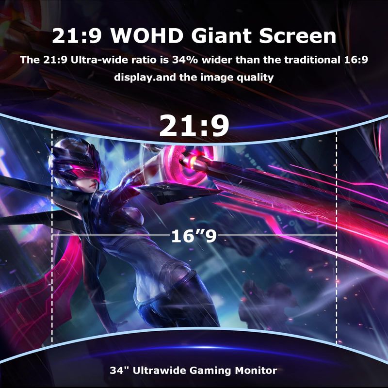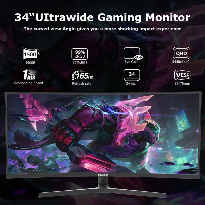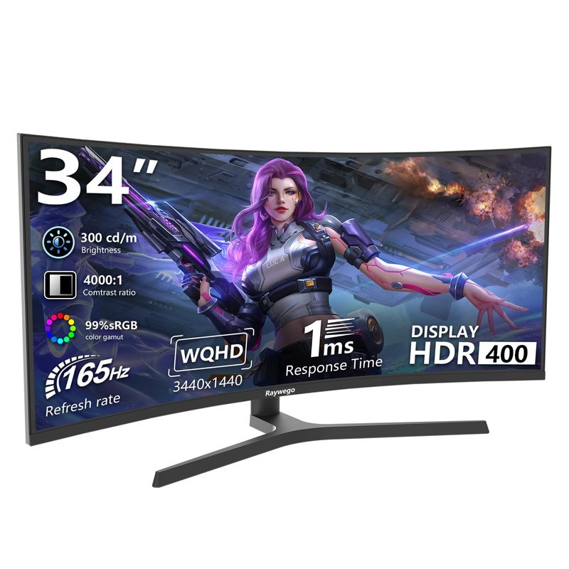 Monitor de juegos de computadora ultraancho curvado de 34 pulgadas 165 Hz, UWQHD 3440 x 1440, 1500R