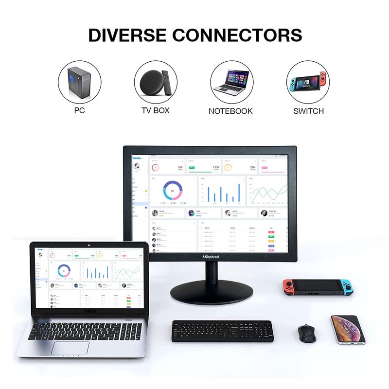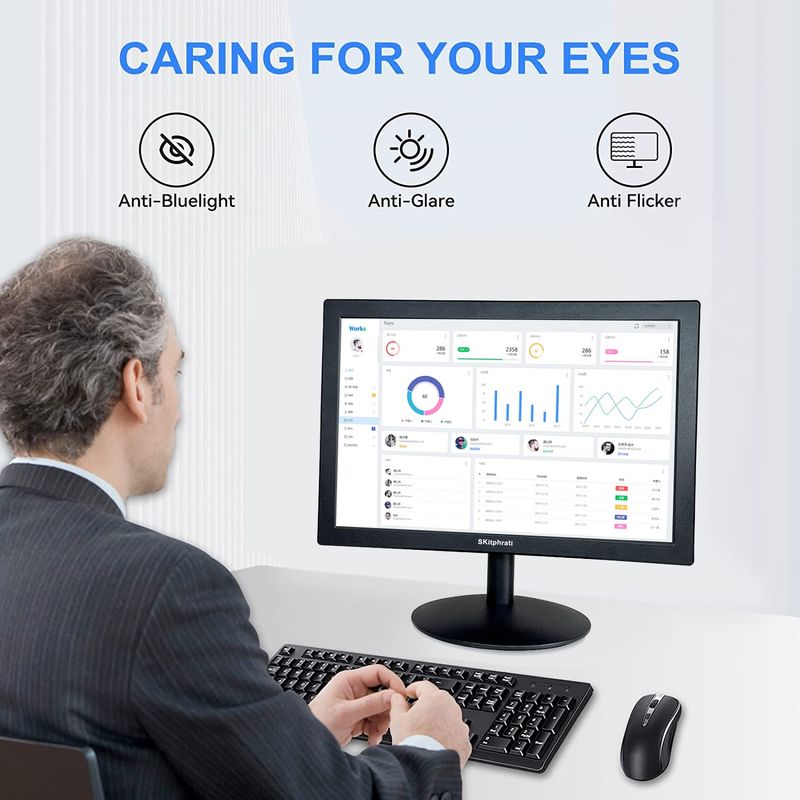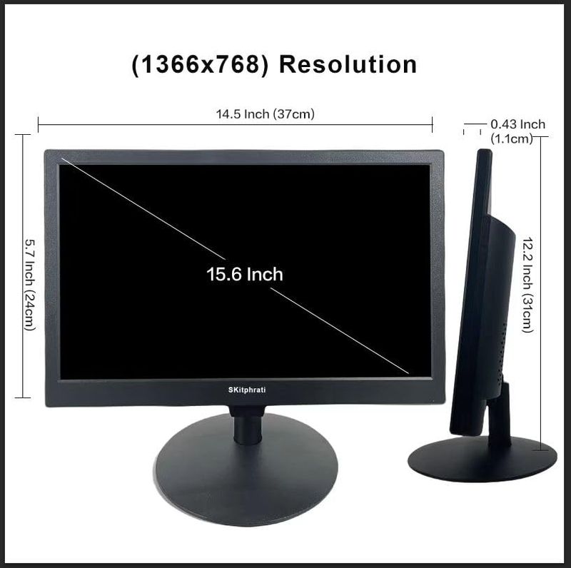Monitor de PC de 15.6 pulgadas, pantalla de escritorio FHD 1366 x 768 con puertos HDMI VGA, montaje