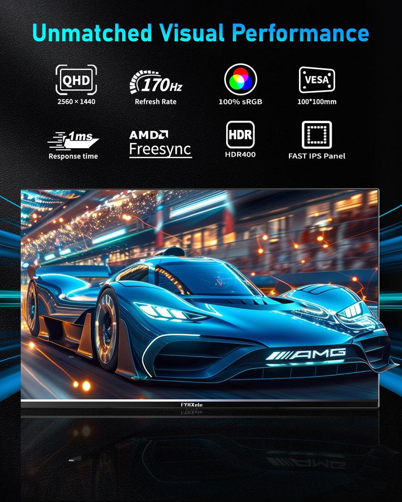 Monitor de videojuegos, monitor de PC de 27 pulgadas 1440P 170Hz, monitor de computadora IPS rápido