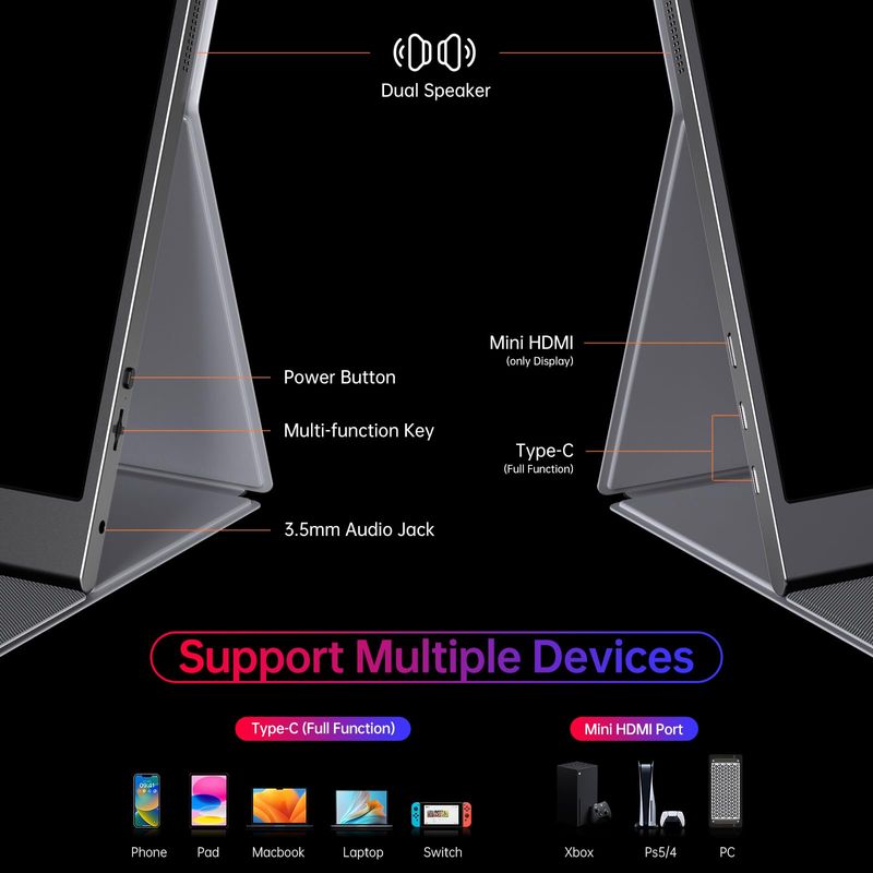 INFORMÁTICAMONITORESMonitor portátil 4K de 15.6 pulgadas 3840 x 2160 UHD USB-C HDMI, monitor para laptop, 100% RGB IPS,