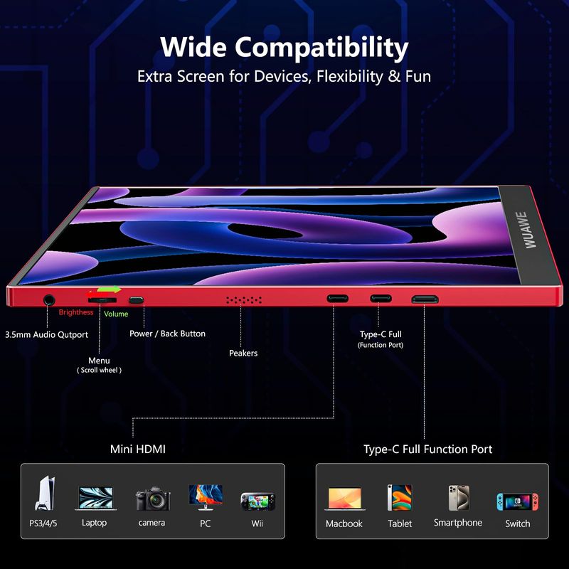 Monitor portátil de 16 pulgadas 1200P IPS Monitor de viaje para portátil con soporte integrado,