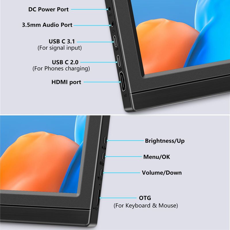 Monitor portátil de 17.3 pulgadas HD 1600x900 USB C HDMI Monitor de viaje para computadora portátil,