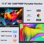 INFORMÁTICAMONITORESMonitor portátil de 17.3 pulgadas HD 1600x900 USB C HDMI Monitor de viaje para computadora portátil,