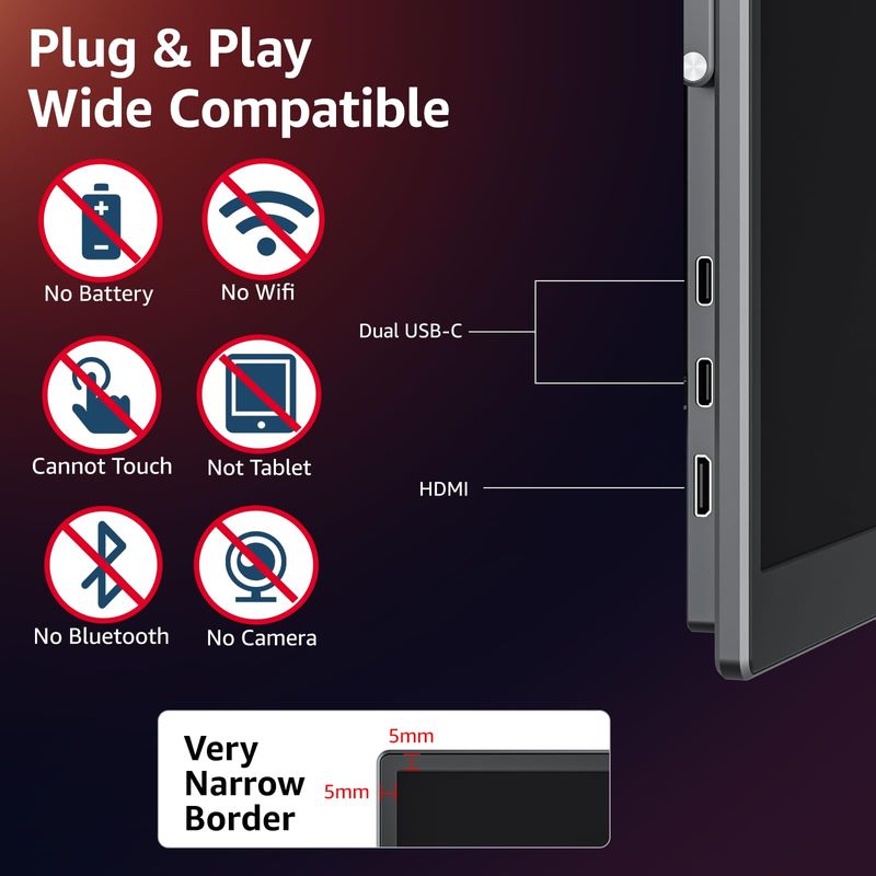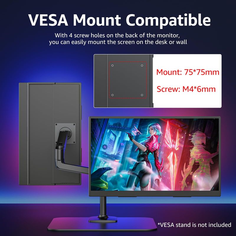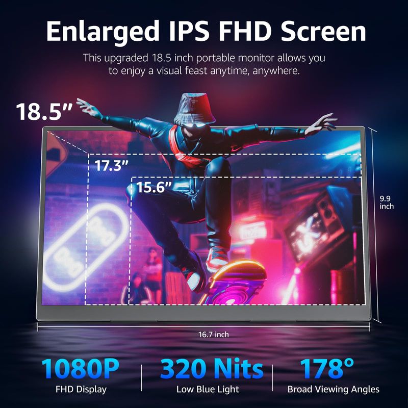 Monitor portátil de 18.5 pulgadas 1080P FHD 100Hz 125% sRGB HDMI USB-C monitor portátil grande para