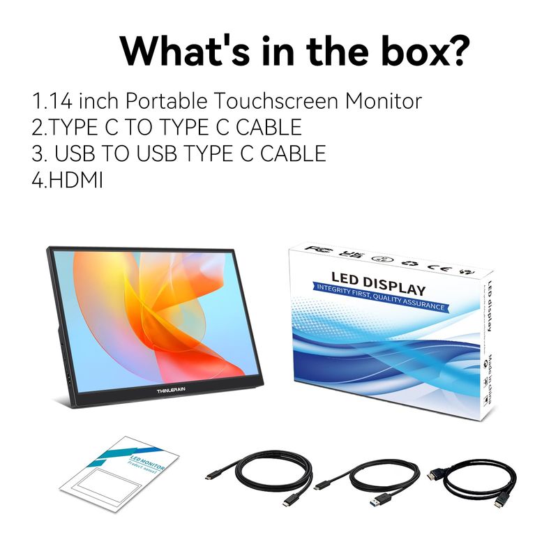 Monitor portátil IPS FHD 1920x1200 de 14 pulgadas con pantalla táctil tipo C 3.1 y HDMI, monitor de