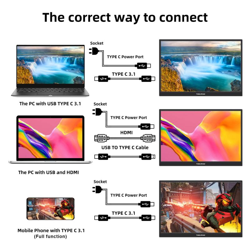INFORMÁTICAMONITORESMonitor portátil IPS FHD 1920x1200 de 14 pulgadas con pantalla táctil tipo C 3.1 y HDMI, monitor de