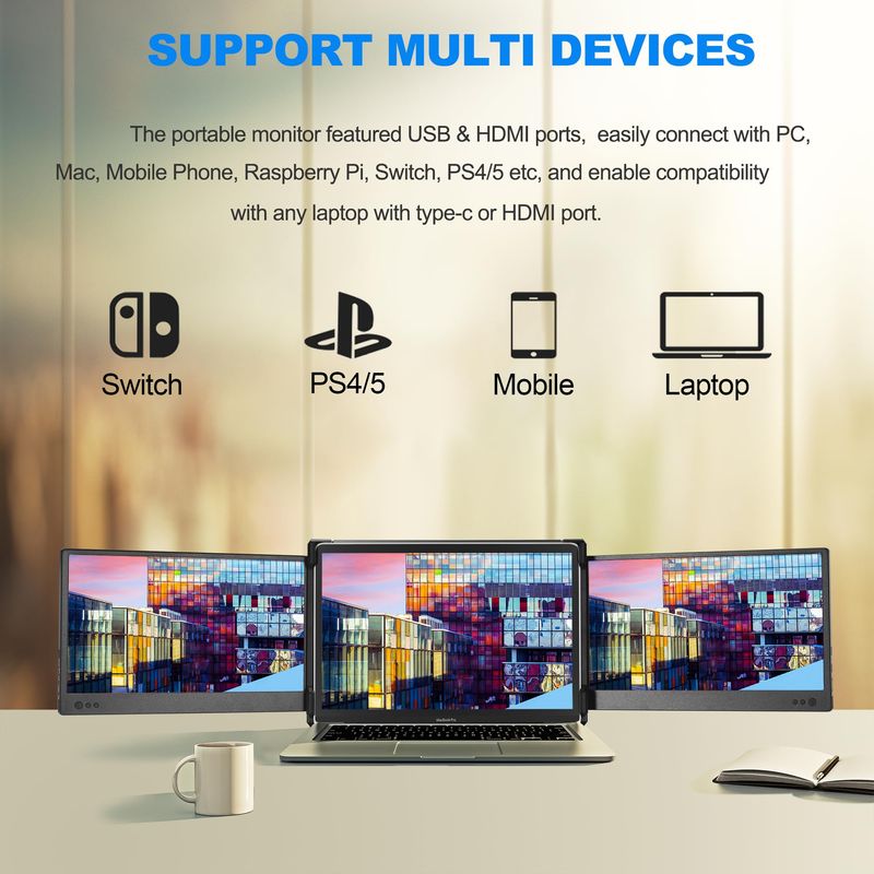 Monitor triple para portátil de 13 a 16 pulgadas, extensor de pantalla de portátil de 12 pulgadas