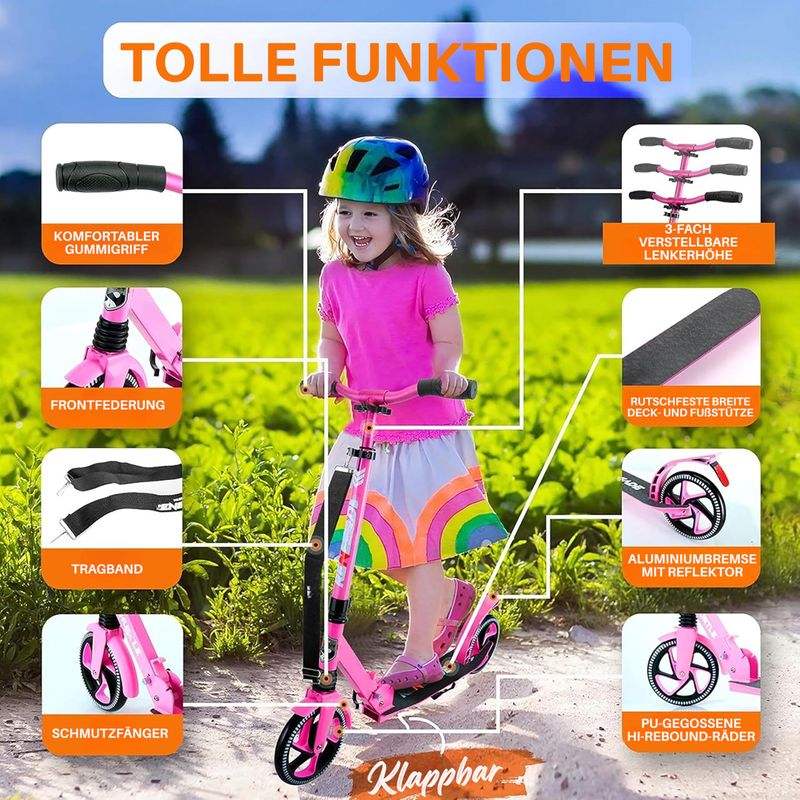 MANILLAR DE BARRA EN T AJUSTABLE: El manillar ajustable T-Bar es otra gran característica de este scooter rosa, ya que puedes ajustar la altura a 3 variaciones diferentes para tu comodidad, lo que hace que este scooter sea perfecto para niños mayores, adolescentes y adultos