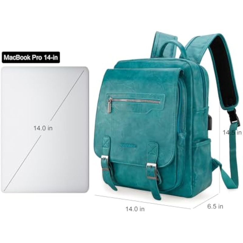 MONTANA WEST MOCHILA PARA LAPTOP PARA MUJERES Y HOMBRES, UNISEX, VINTAGE, MOCHILA CASUAL, MOCHILA DE VIAJE, TRABAJO, CON PUERTO DE CARGA USB, TURQUESA, COMPACTO
