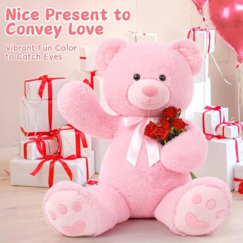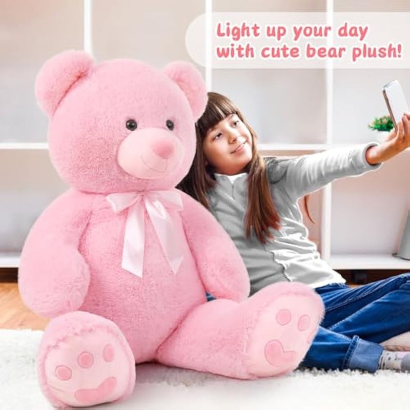 MORISMOS OSO DE PELUCHE GIGANTE DE 4 PIES, OSO DE PELUCHE GRANDE PARA BABY SHOWER, REGALO DE OSO DE PELUCHE GRANDE PARA NIñOS, NIñAS, NOVIA, HOMBRES EN SAN VALENTíN, NAVIDAD, CUMPLEAñOS (ROSA)