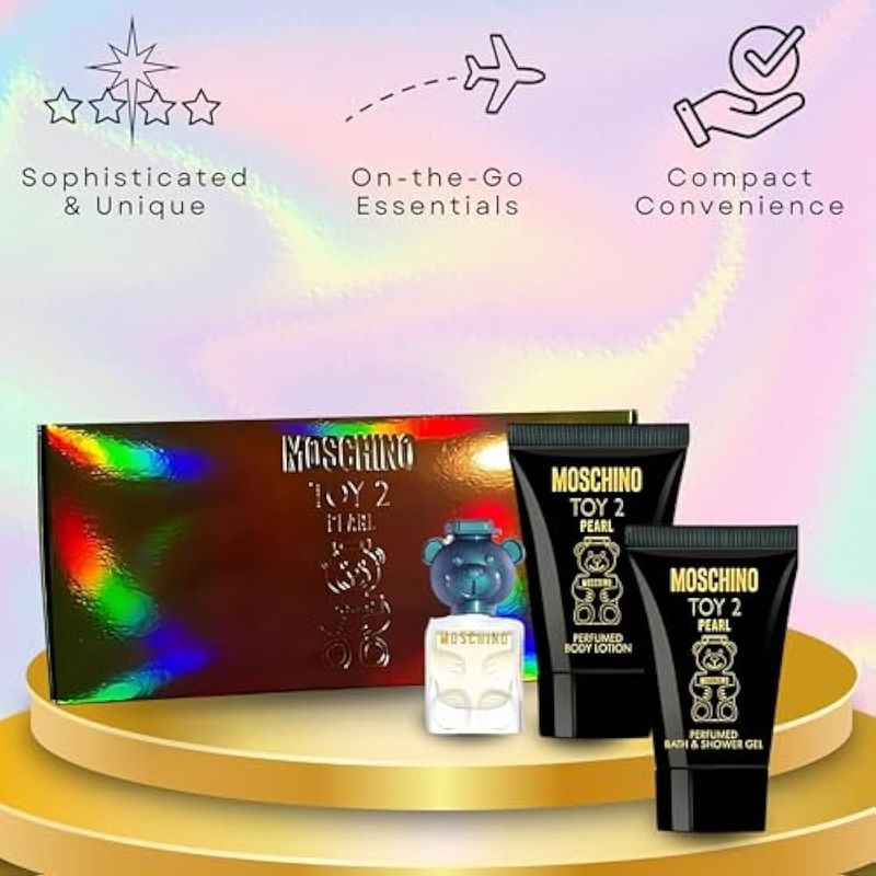 BELLEZA Y SALUDPERFUMESPERFUME PARA MUJERMOSCHINO Toy - Perfume de perlas de 2 pulgadas para mujer, set de regalo, mini Splash Trio, 0.17
