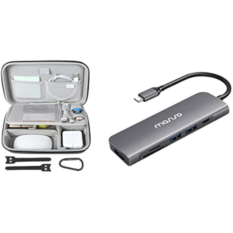 MOSISO HUB USB-C Y ORGANIZADOR ELECTRóNICO DE VIAJE COMPATIBLE CON ADAPTADOR DE CORRIENTE MACBOOK, COMPATIBLE CON MAGIC PENCIL, TARJETA SD, DISCO FLASH USB CON 4 INSERTOS MODULARES Y 2 BRIDAS DE CABLES Y GANCHO A PRESIóN, NEGRO Y GRIS ESPACIAL