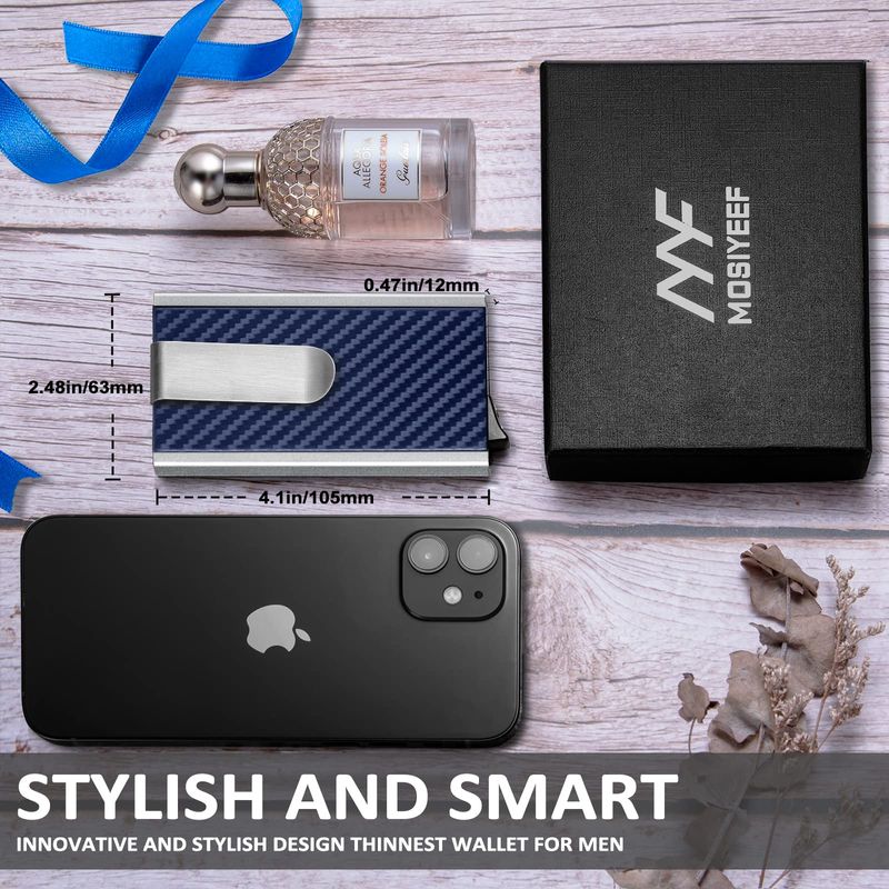 MOSIYEEF Cartera de sigilo desplegable para hombre, cartera con bloqueo RFID para tarjetas con clip