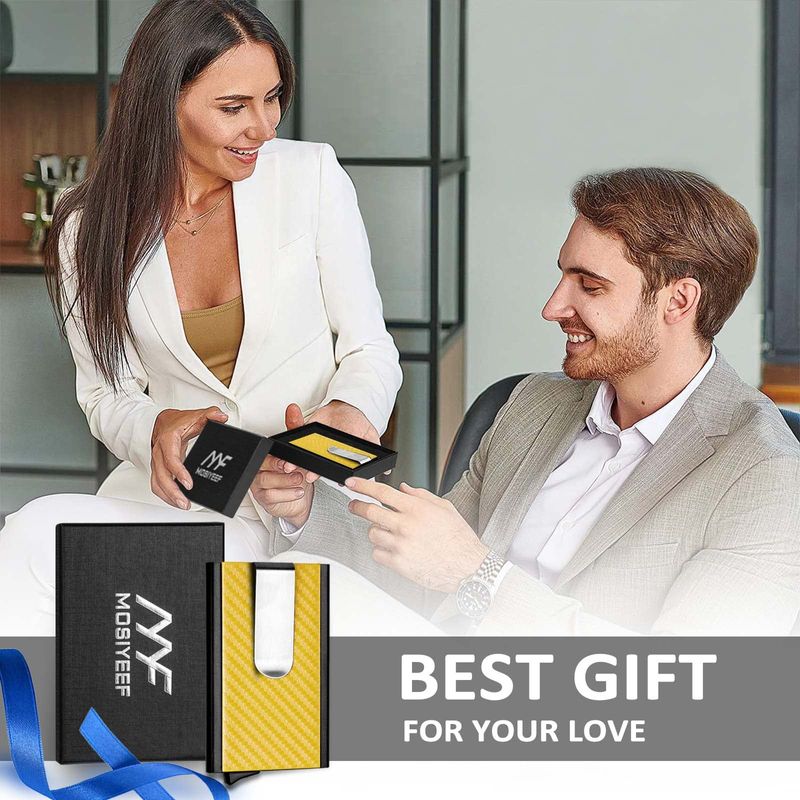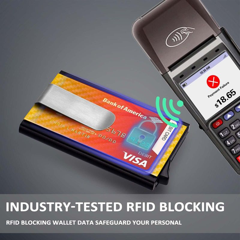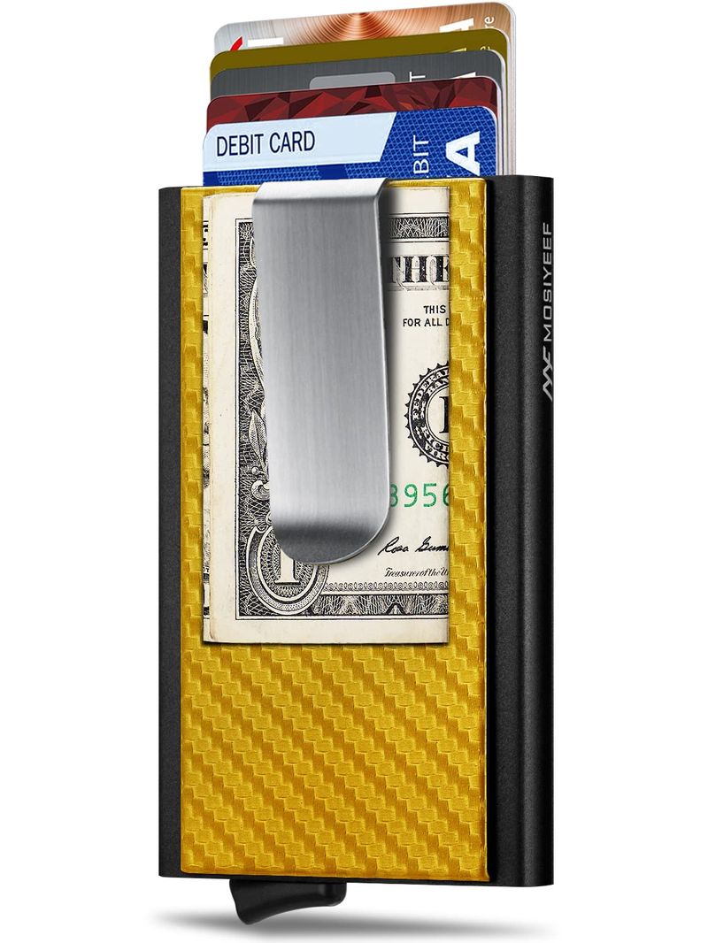MOSIYEEF Cartera de sigilo desplegable para hombre, cartera con bloqueo RFID para tarjetas con clip