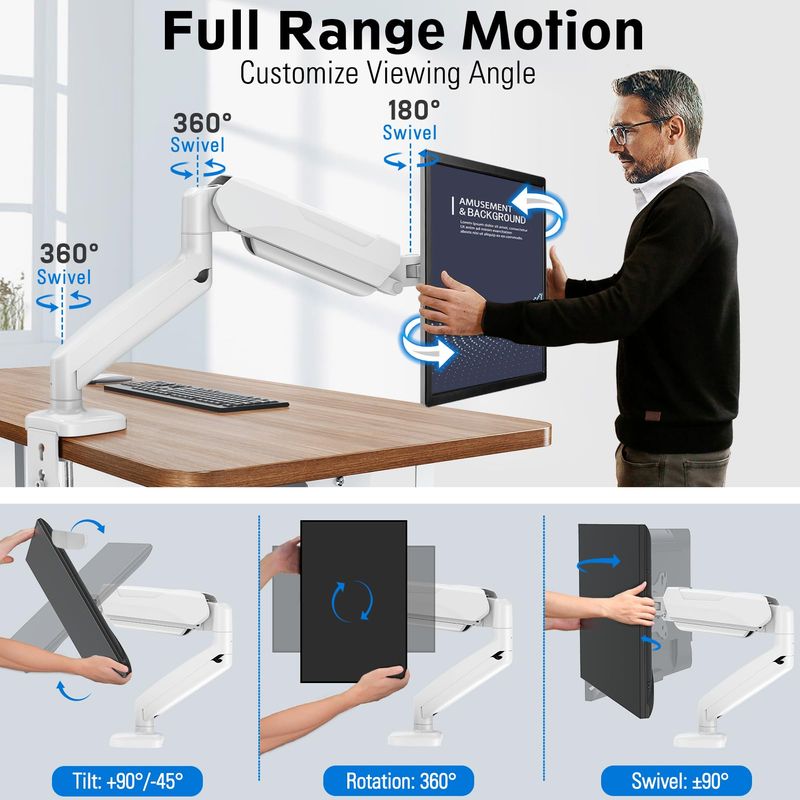 MOUNTUP Soporte de escritorio para un solo monitor, soporte de brazo ajustable con resorte de gas