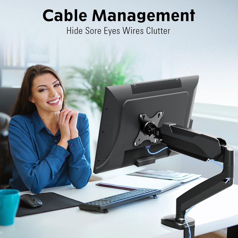 MOUNTUP Soporte de escritorio para un solo monitor, soporte de brazo ajustable con resorte de gas