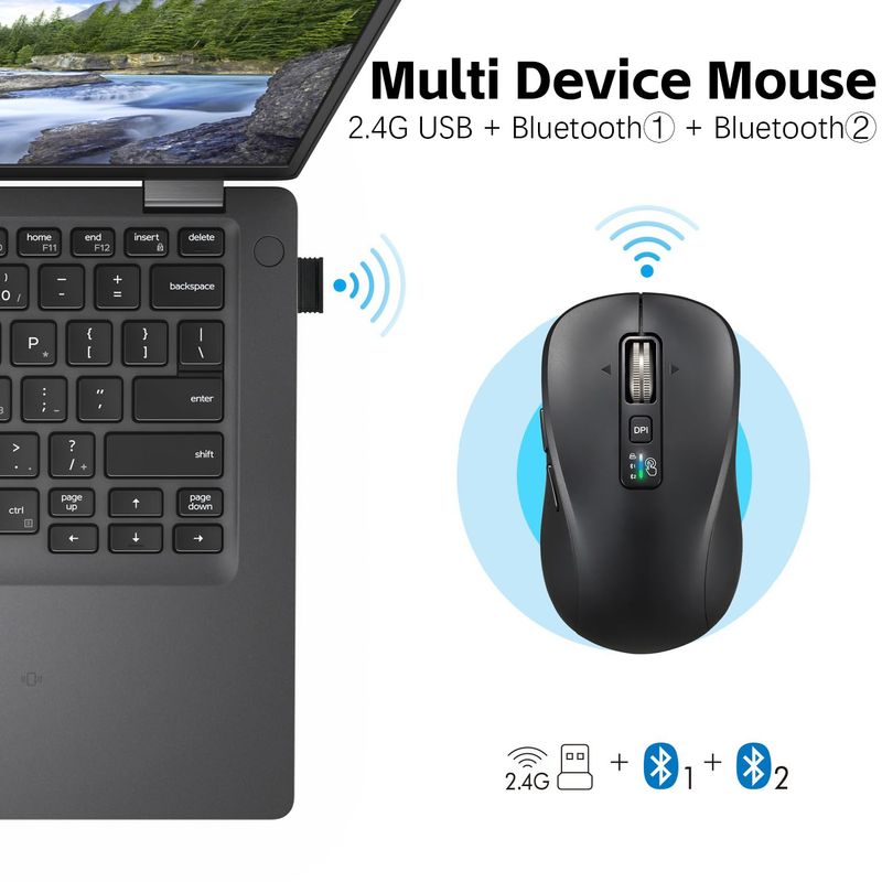 INFORMÁTICAACCESORIOS DE INFORMATICAMOUSEMouse inalámbrico Bluetooth (USB + BT1 + BT2), 4 niveles de DPI ajustable, modelo portátil L380,