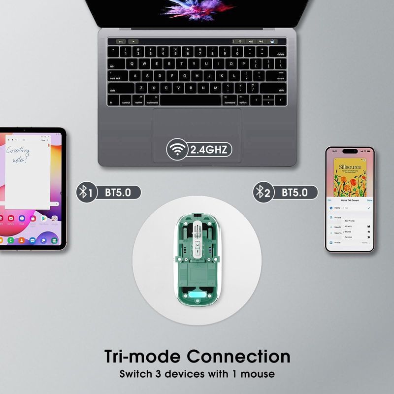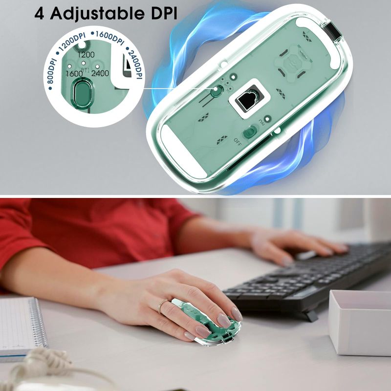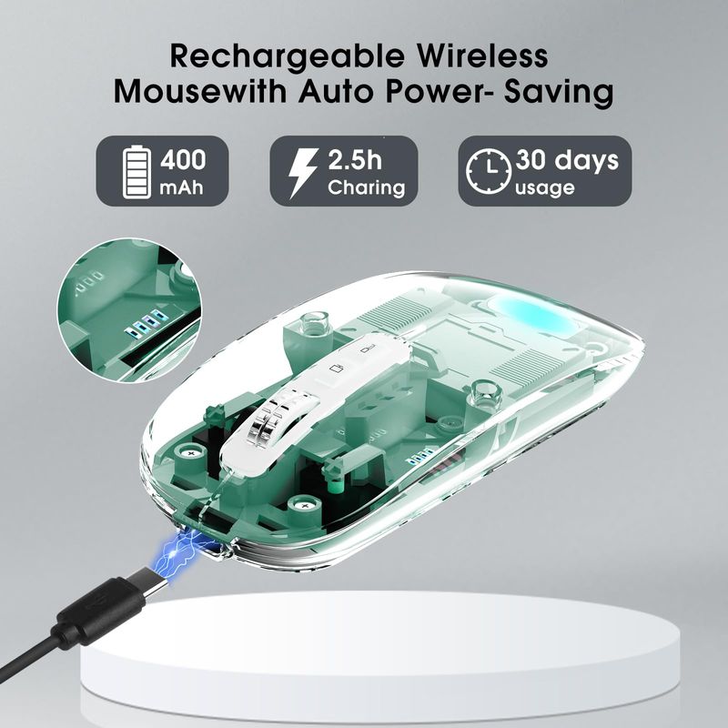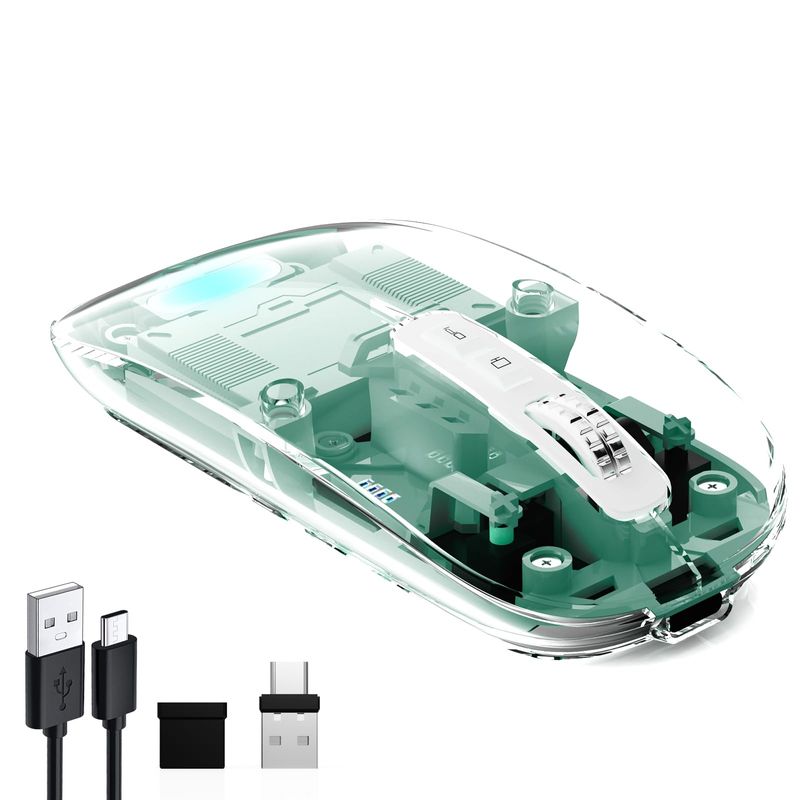 Mouse inalámbrico transparente para computadora, mouse Bluetooth recargable, pantalla de