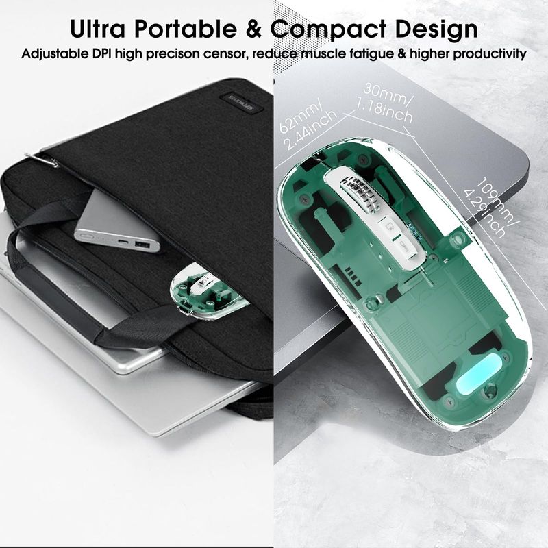 INFORMÁTICAACCESORIOS DE INFORMATICAMOUSEMouse inalámbrico transparente para computadora, mouse Bluetooth recargable, pantalla de
