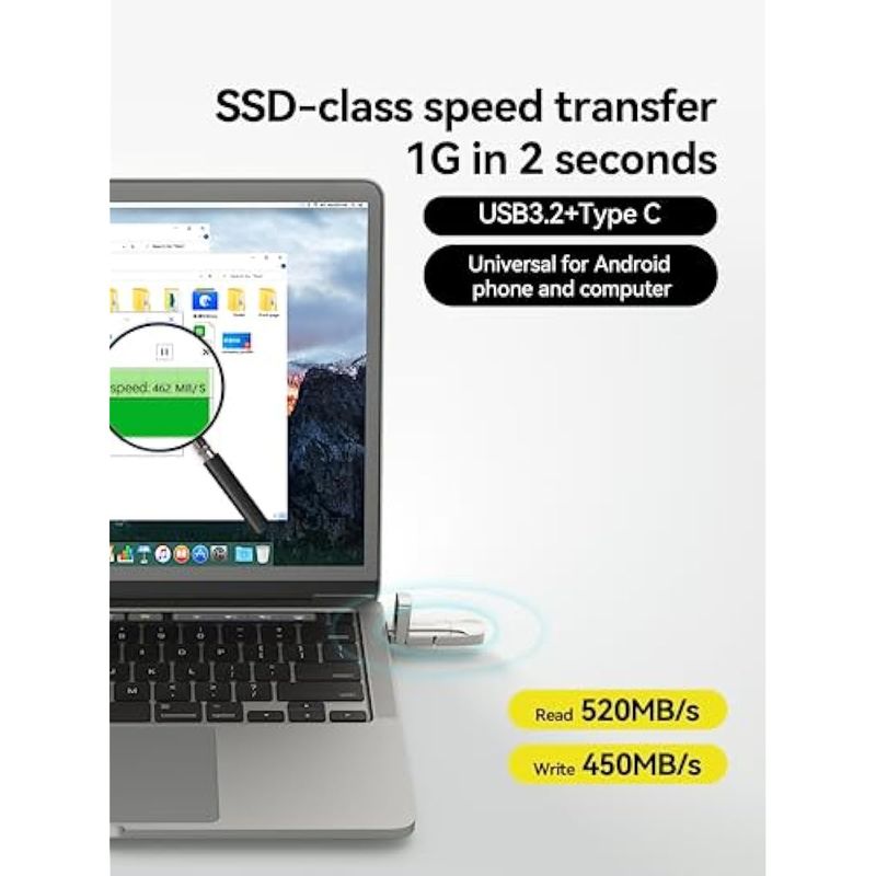 MOVE SPEED Unidad flash de estado sólido USB 3.2 de 1 TB 520 MB/s de alta velocidad tipo C unidad
