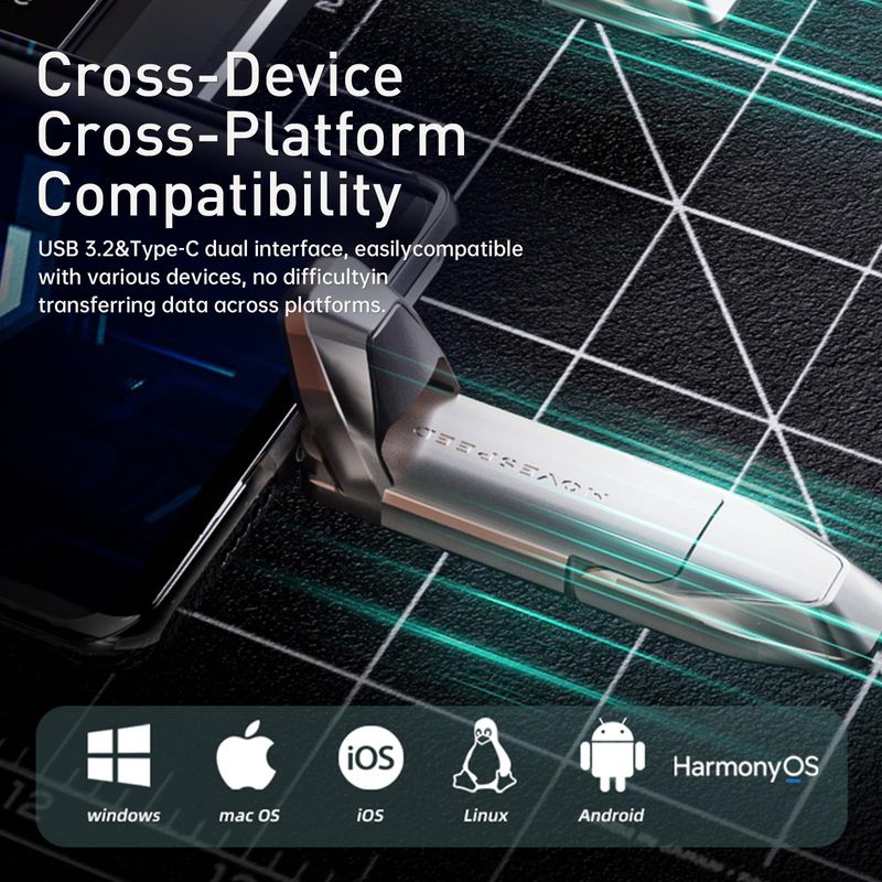 INFORMÁTICAACCESORIOS DE INFORMATICACABLESMOVE SPEED Unidad flash de estado sólido USB 3.2 de 1 TB 520 MB/s de alta velocidad tipo C unidad