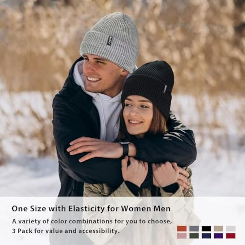 Beanies Women 3 Pack, Winter Hats for Women Men Fleece Lined Knit Warm Thermal for Cold Weather, Beanie for Women Fashionable Skull Cap