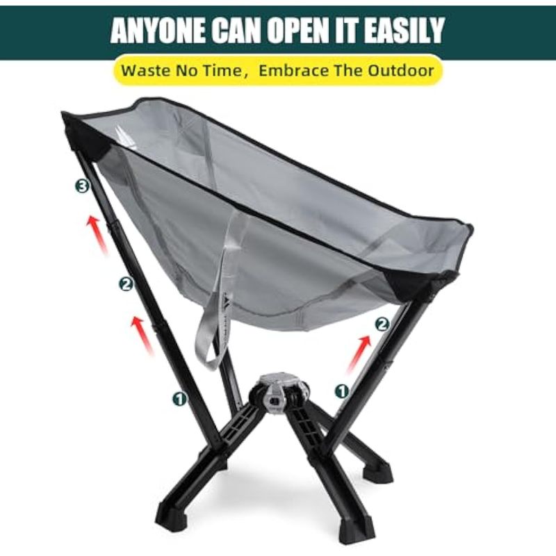 Instalación sencilla: nuestra silla plegable compacta se puede montar y plegar en cuestión de segundos gracias a nuestro diseño patentado y fácil de usar. No hay necesidad de lidiar con intrincados mecanismos de plegado. Con nuestra silla de camping desplegable, puedes disfrutar plenamente de actividades al aire libre mientras reduce el tiempo de instalación.