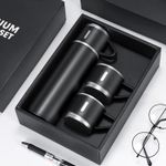 MUCR JUEGO DE TERMO DE ACERO INOXIDABLE DE 16.9 FL OZ/17 ONZAS, BOTELLA DE AGUA AISLADA CON TRES TAZAS PARA BEBIDAS CALIENTES Y FRíAS, COLOR AZUL