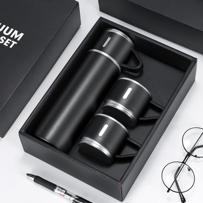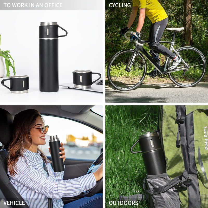 Excelente juego de botellas de vacío como regalo: proporcionamos varios colores para elegir y la botella de agua insalada está equipada con tres tazas para reemplazar, y también puedes compartir el agua, té, café y otras bebidas con tus amigos y familiares, también regalarlo es una muy buena opción.