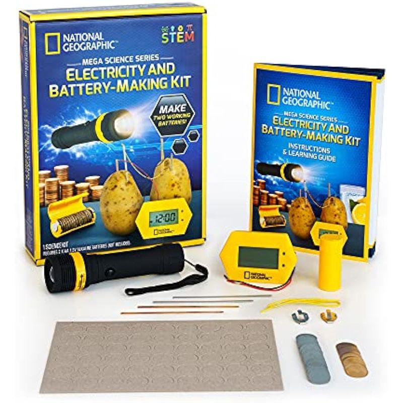 NATIONAL GEOGRAPHIC Kit de fabricación de baterías, reloj de patata y linterna de centavo, 2