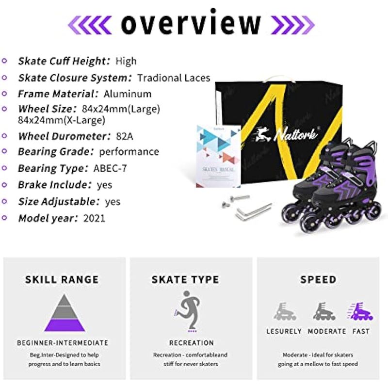 Nattork Patines en línea ajustables para adultos y adolescentes, patines de ruedas para exteriores e