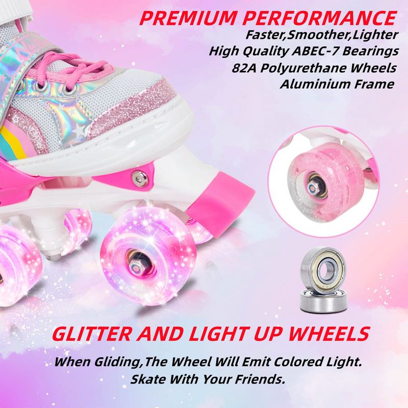 NATTORK ROLLER SKATES FOR GIRLS KIDS TODDLER, 4 SIZES ADJUSTABLE RAINBOW QUAD SKATES WITH LIGHT UP WHEELS,BEST GIFT FOR KIDS BEGINNERS