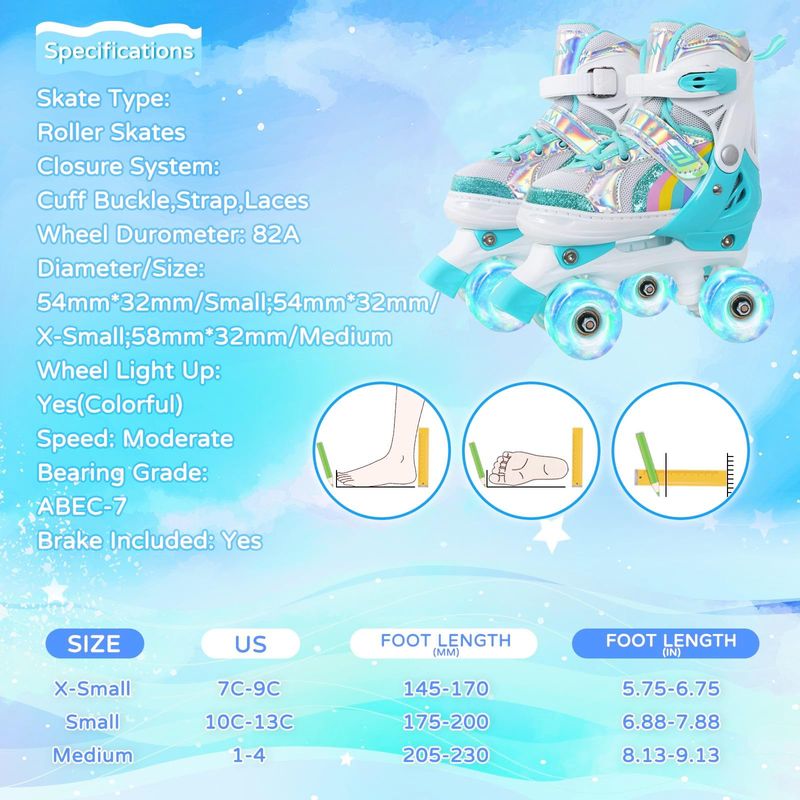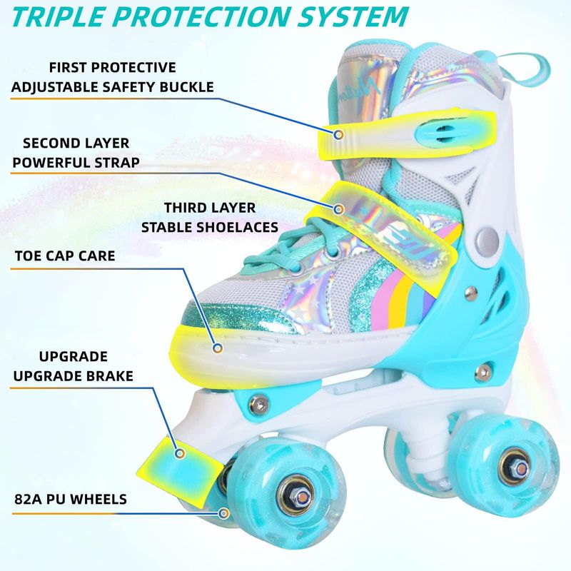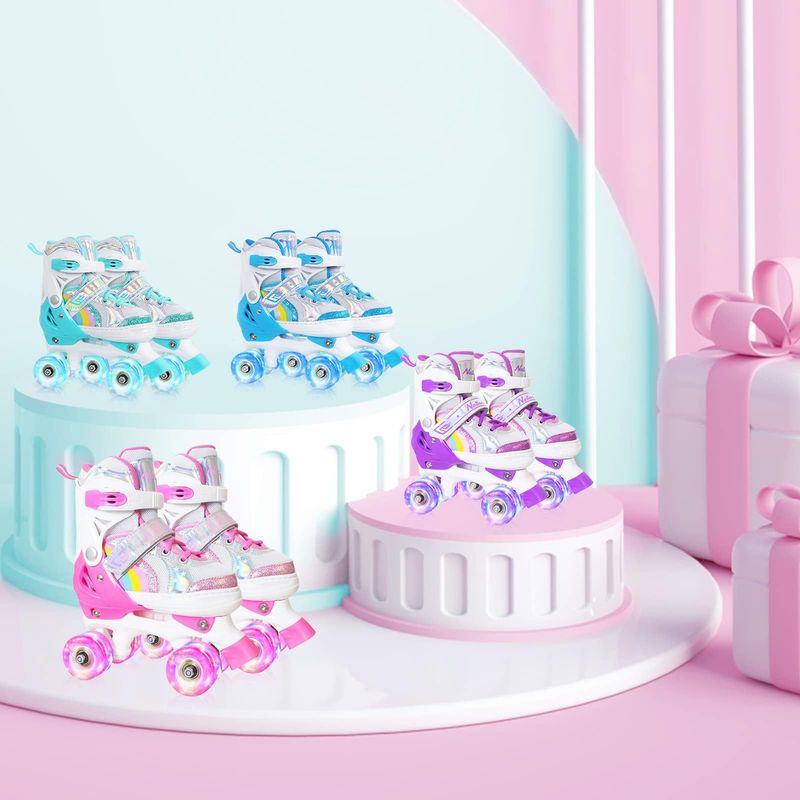 Nattork Roller Skates for Girls Kids Toddler, 4 Sizes Adjustable Rainbow Quad Skates with Light up