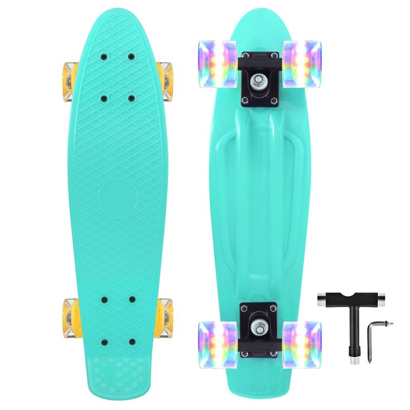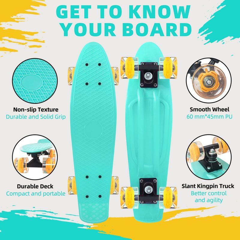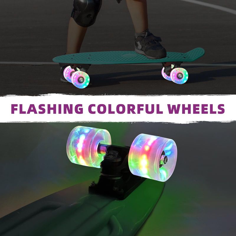 Nattork Skateboards 22 Inch Mini Cruiser Skateboard Complete Retro Skate Boards with Colorful Light