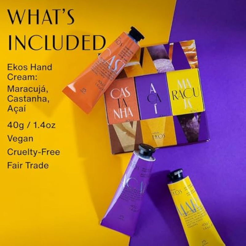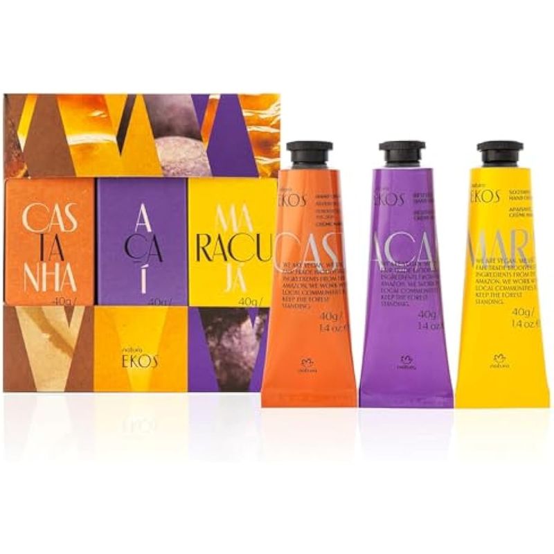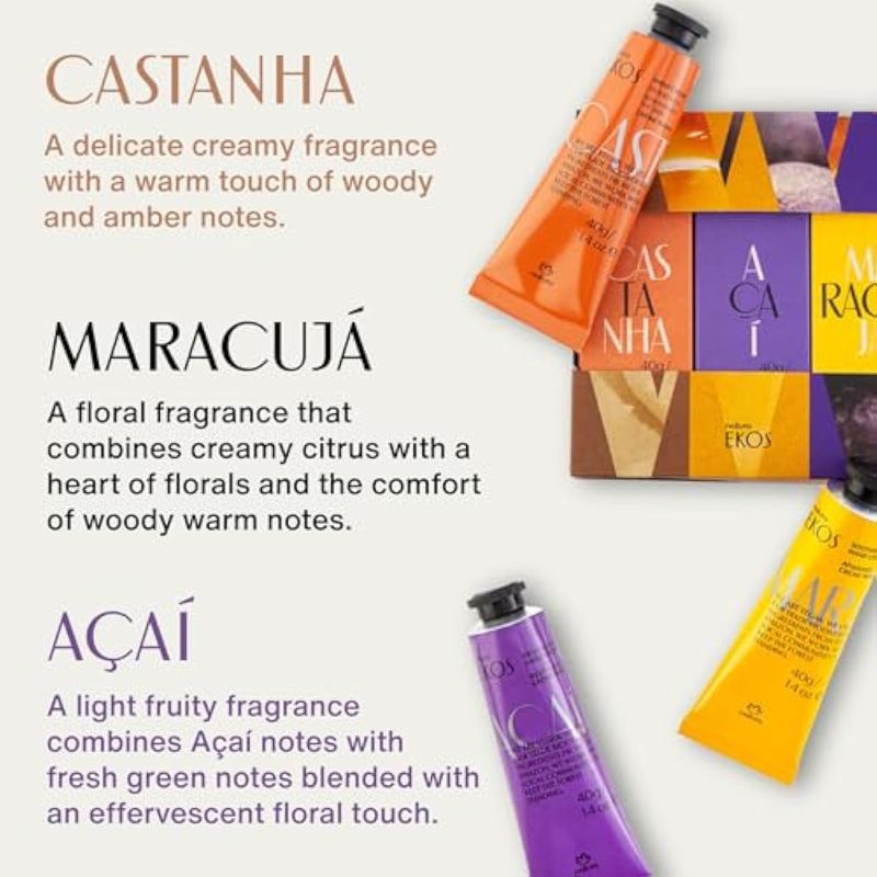 natura - Ekos Tropical Crema de Manos Trio Paquete Variado, 3 Cremas - (1) Maracujá, (1) Castanha y