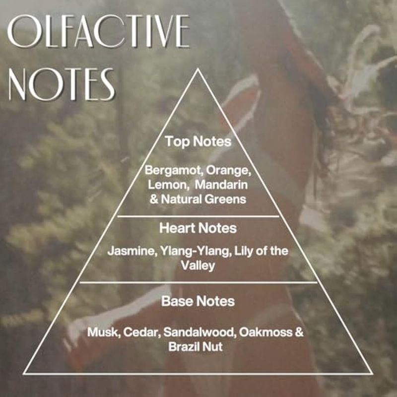 Las notas de salida son lavanda, naranja, mandarina, limón, notas verdes y bergamota. Las notas medias son Jasmine, Lily-of-the-Valley e Ylang-Ylang. Las notas de fondo son nuez de Brasil, almizcle, sándalo, cedro y musgo de roble.