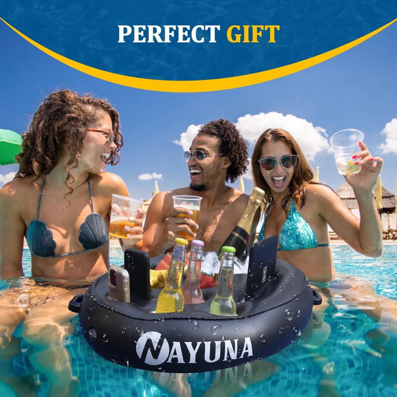 NAYUNA Pong Floaty for Pool with Cooler & 20 Party Cups - Inflatable Pool Pong Table Summer