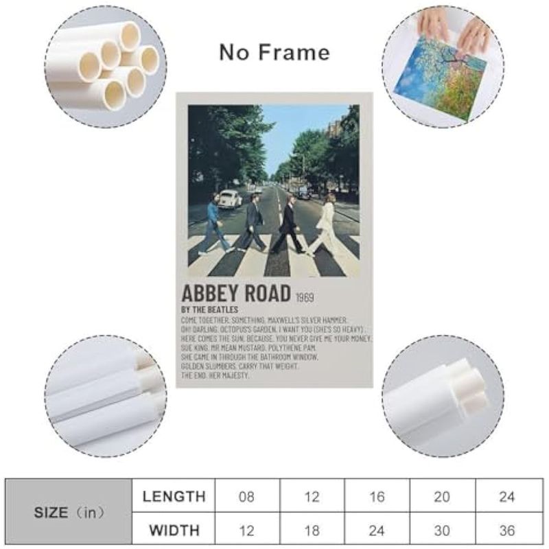 NDOWALFUR PóSTER DE THE BEATLES PóSTER DE MúSICA VINTAGE, PINTURA DECORATIVA, LIENZO, ARTE DE PARED, PóSTER DE SALA DE ESTAR, DORMITORIO, PINTURA DE 12 X 18 PULGADAS (11.8 X 17.7 IN)