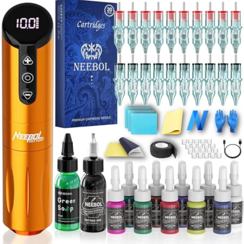 BELLEZA Y SALUDBELLEZA Y CUIDADO CORPORALNeebol Kit de pistola de tatuaje inalámbrica, bolígrafo de tatuaje giratorio con batería de 6 horas,
