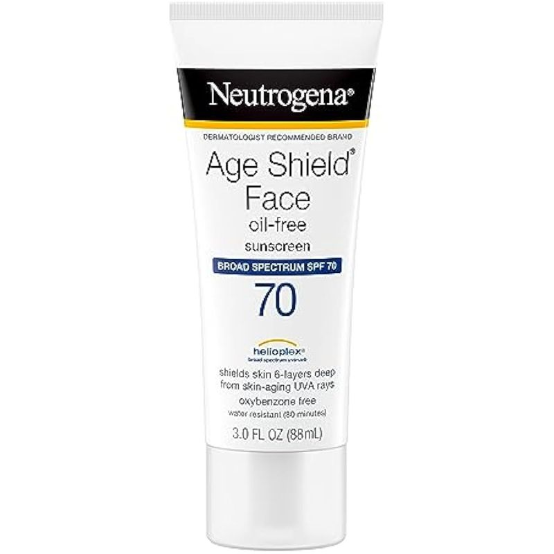NEUTROGENA AGE SHIELD - LOCIóN DE PROTECCIóN SOLAR FACIAL SIN ACEITE CON AMPLIO ESPECTRO SPF 70, PROTECTOR SOLAR HIDRATANTE NO COMEDOGéNICO PARA AYUDAR A PREVENIR LOS SIGNOS DE ENVEJECIMIENTO, SIN