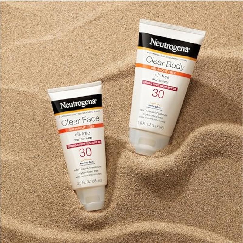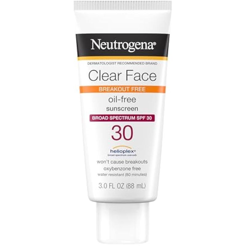 Neutrogena Loción líquida Clear Face Protector solar con amplio espectro SPF 30 está formulado para prevenir quemaduras solares sin agravar o causar brotes y cuenta con una fórmula que no contiene oxibenzona