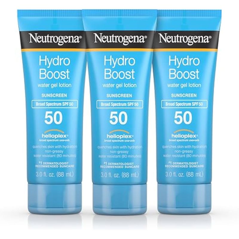 Paquete de 3: 3 onzas líquidas de loción de protección solar Neutrogena Hydro Boost Water Gel con amplio espectro SPF 50 que ofrece protección UVAUVB ya que ayuda a hidratar la piel sin la sensación grasa