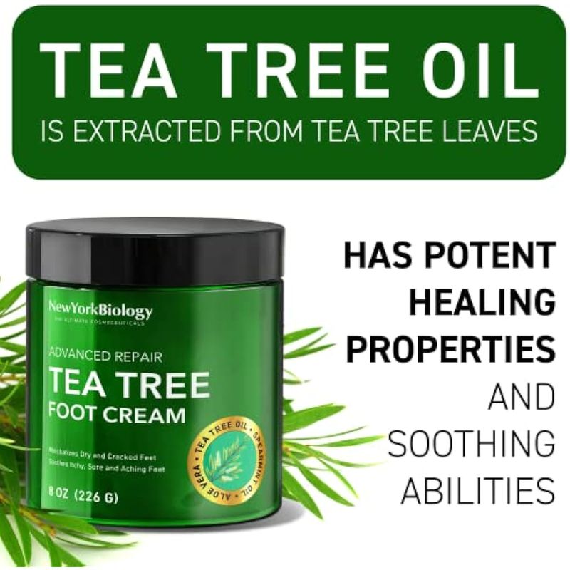 New York Biology - Crema de pies con aceite de árbol de té para pies secos y agrietados, pies de