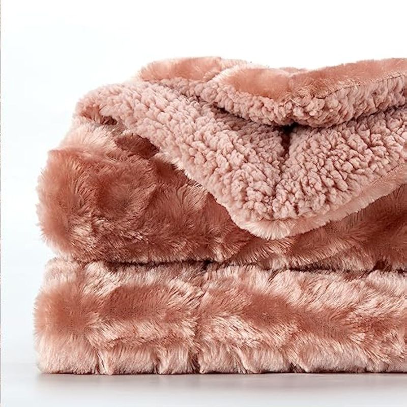 Tela ultra suave: Tela de piel sintética + tela sherpa súper suave. Esta hermosa manta de sherpa utiliza tecnología avanzada de teñido tie-dye, cuidadosamente construida con piel sintética de lujo de alta calidad y sherpa extremadamente suave. Te enamorarás de esta suavidad y elegancia.